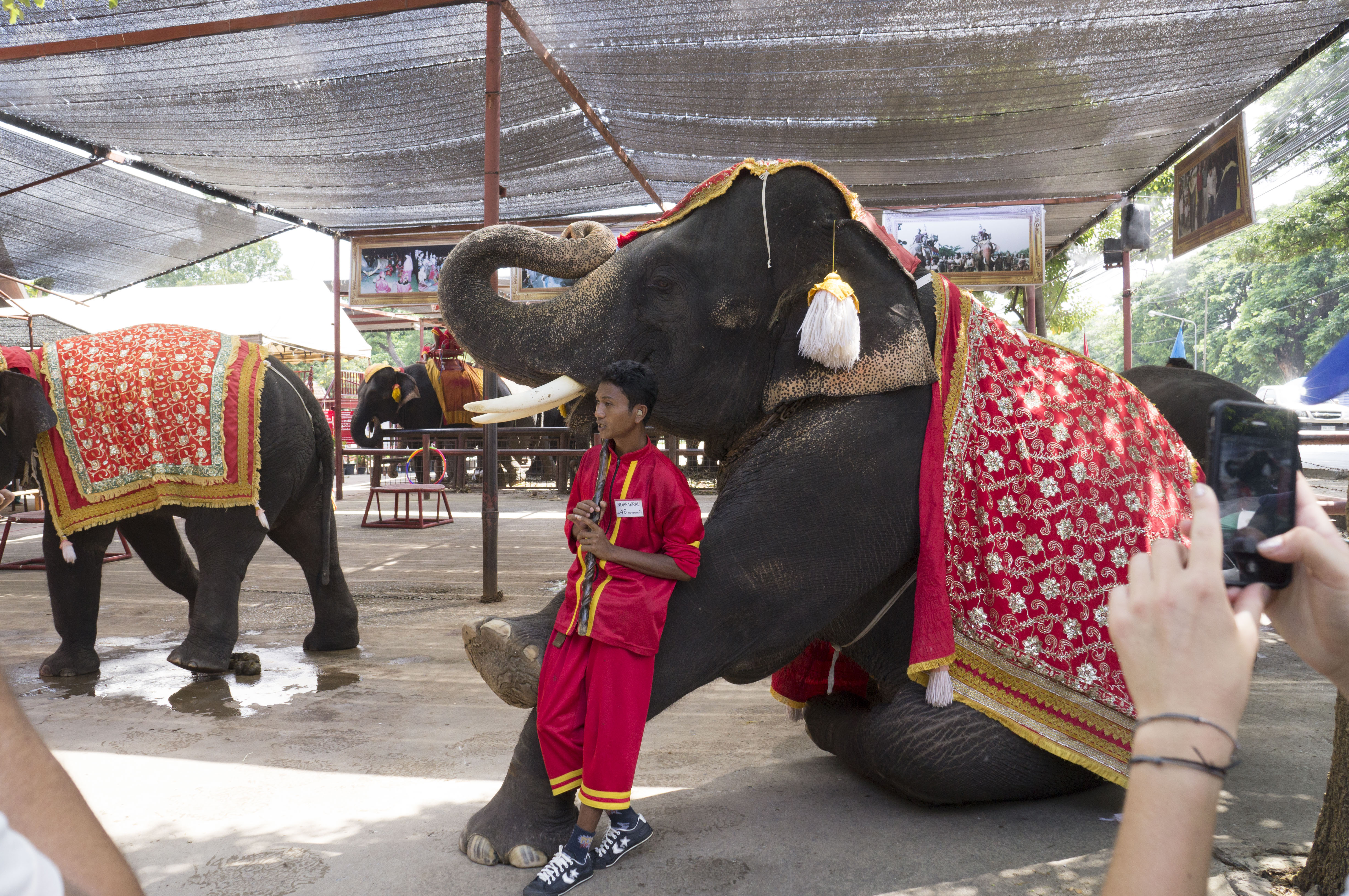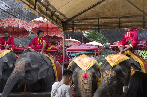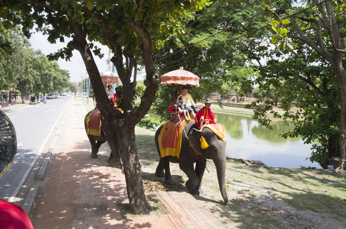 We enjoyed some special vehicle such as share-ride bus (a HIGH ACE ?). We went Ayutthaya heritage site and ride a elephant.
